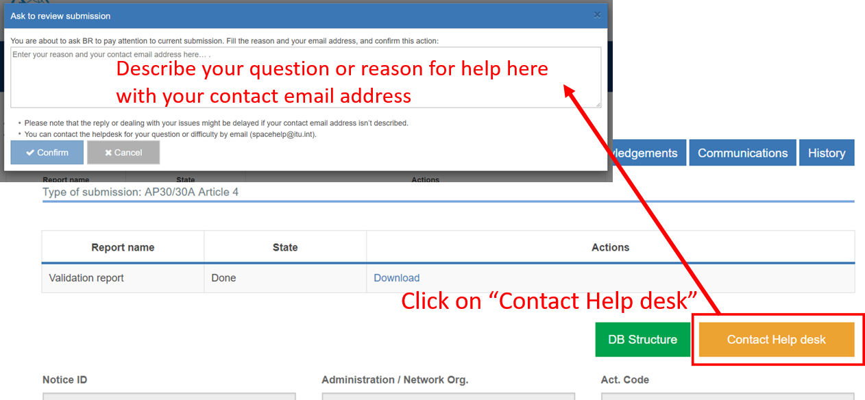- "ITU" is shown in the column of "Submitted by" when the submission was submitted by email and BR user uploaded it on behalf of the administration.