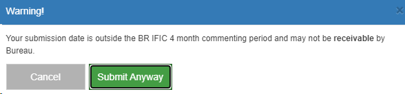 1. Warning message is shown when SpaceCom comments are uploaded outside BRIFIC 4 months commenting period