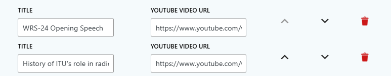 The YouTube Playlist Block is a branded WordPress component that allows you to create and display custom playlists of YouTube videos. Designed with ITU branding, it offers a clean and engaging layout for showcasing video content.