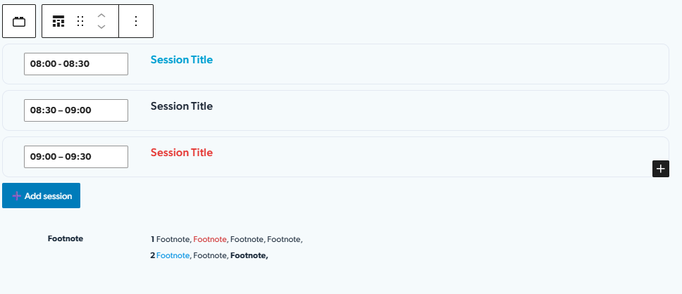 Editors simply insert the block into a page and place any content inside it: text, images, tables, programmes, speaker lists, resources, or content from BR’s custom blocks.