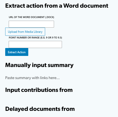 The Summary to Table block allows users to extract hyperlinks from a Word document by specifying the relevant section or topic. It also supports manual insertion of paragraphs if needed.