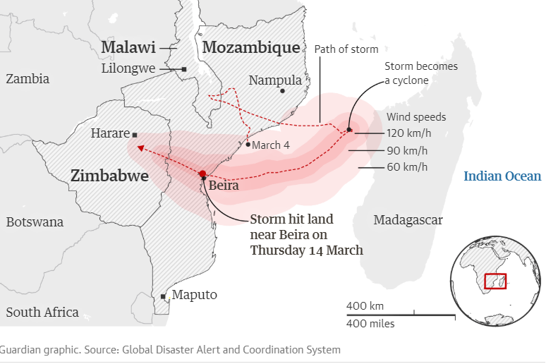 Satellite telecommunications equipment was deployed to Mozambique and Zimbabwe after the severe devastation caused by category 4 Hurricane Idai. The hurricane hit Mozambique, the city of Beira, at about midnight on 14 March 2019 before striking the neighboring countries Zimbabwe and Malawi. The devastating hurricane that hit south-eastern Africa has been the worst ever disaster to strike the southern hemisphere. Hurricane Idai has caused devastating floods and has killed and injured thousands of people as well as crops, houses and roads. More than 2.6 million people could be affected across the three countries. Most of the districts are almost completely cut off. The satellite telecommunications equipment has been sent to the devastated areas where telecommunications are most needed for coordination of response efforts on the ground.