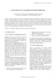 APPLICATION OF AI TO MOBILE NETWORK OPERATION