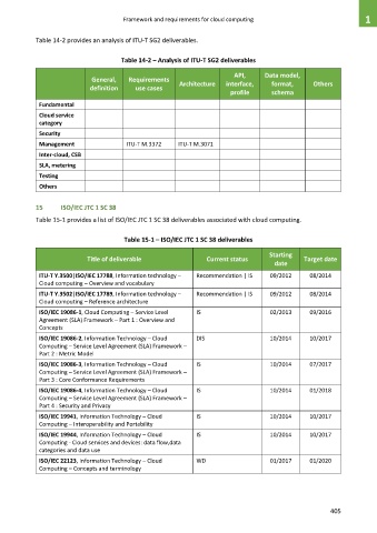 Table 15-1 provides a list of ISO/IEC JTC 1 SC 38 deliverables associated with cloud computing.