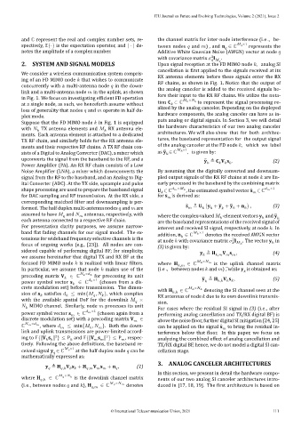2. SYSTEM AND SIGNAL MODELS Upon signal reception at the FD MIMO node , analog SI