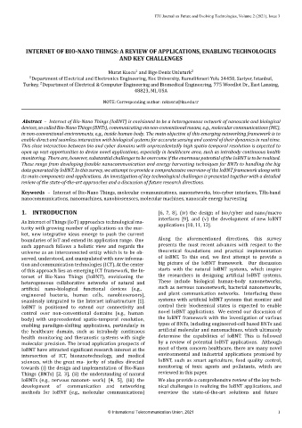 Page 13 - ITU Journal Future and evolving technologies Volume 2 (2021), Issue 3 – Internet of Bio-Nano Things for health applications