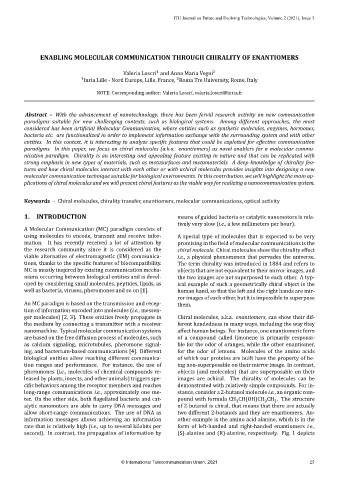 paradigms. In this paper, we focus on chiral molecules (a.k.a. enantiomers) as novel enablers for a molecular commu‑