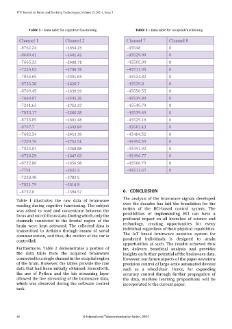 Table 1 – Data table for cognitive functioning Table 2 – Data table for occipital functioning