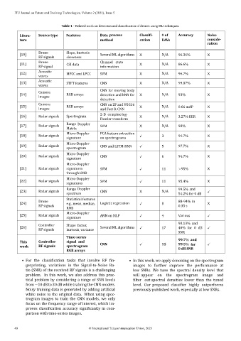 Table 1 – Related work on detection and classi ication of drones using ML techniques.
