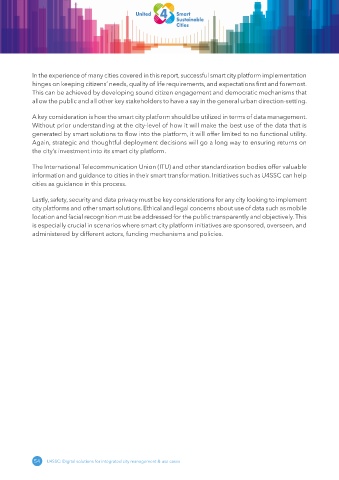 information and guidance to cities in their smart transformation. Initiatives such as U4SSC can help