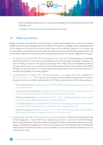 results of the U4SSC-KPI pilot project, the following action points have been suggested for Daegu: