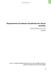 Core network aspects 1 Requirements of network virtualization for future networks Recommendation ITU-T Y.3012 (04/2014) SERIES Y: GLOBAL INFORMATION INFRASTRUCTURE, INTERNET PROTOCOL ASPECTS AND NEXT-GENERATION NETWORKS 101