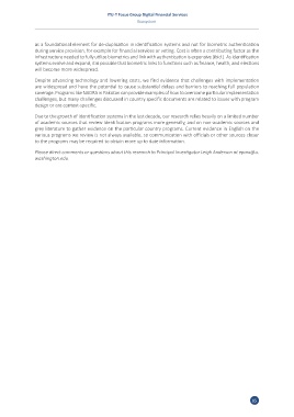 coverage. Programs like NADRA in Pakistan can provide examples of how to overcome particular implementation