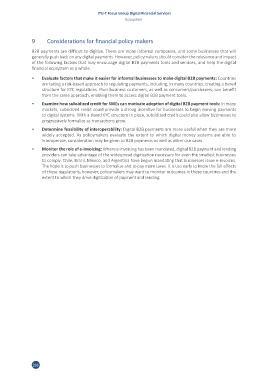 • Monitor the role of e-invoicing: Where e-invoicing has been mandated, digital B2B payment and lending