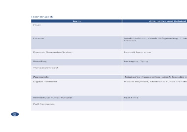 (continued) Float Escrow Deposit Guarantee System Bundling Transaction Cost Payments Digital Payment Immediate Funds Transfer Pull Payments