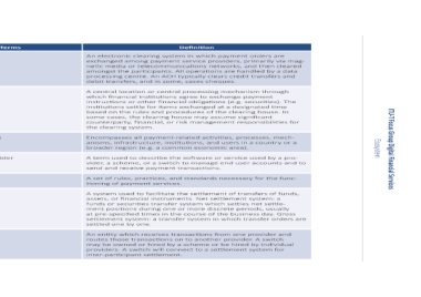 (continued) Automated Clearing House (ACH) Clearing House Payment System Platform Scheme Settlement System Switch