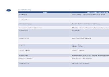 (continued) End User Active User Counterparty Payment System Operator Processor Aggregator Agent Super Agent Processes Authentication Addressing