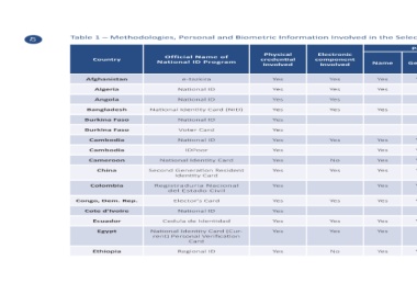T able 1 – Methodologies, Personal and Biometric Information Involved in the Selected National Identity Programs