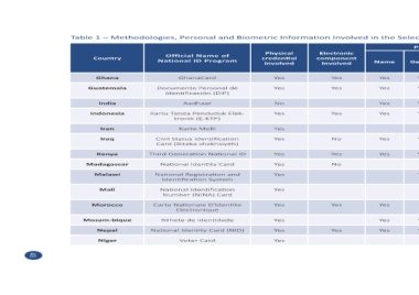 T able 1 – Methodologies, Personal and Biometric Information Involved in the Selected National Identity Programs (continued)