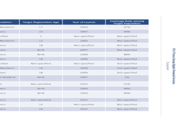 Coverage Rate among T arget Population 97% 99% Not specified Not specified Not specified Not specified 88% Not specified Not specified Not specified Not specified 4% 52% 98% 89% Not specified Not specified Not specified