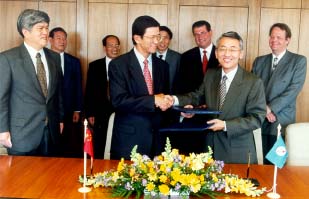 La ceremonia de firma tuvo lugar en la sede de la UIT en Ginebra el 24 de junio de 1999, con la participación de su excelencia el embajador Zonghuai Qiao, representante permanente de la República Popular de China ante las Naciones Unidas en Ginebra y otros organismos internacionales en Suiza, en representación del Gobierno chino, y Yoshio Utsumi en representación de la UIT. El Sr. Qiao dijo que "a China le complace actuar como huésped de este prestigioso evento, que contribuirá a promover el desarrollo de las telecomunicaciones en todos los países de la Región de Asia-Pacífico". El Sr. Utsumi manifestó su gran satisfacción por el hecho de que la UIT fuera a organizar por primera vez un evento en China, así como su convicción de que TELECOM Asia 2000 será un gran éxito para los pueblos de la región.