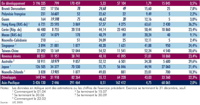cette épreuve et est sur le point de retrouver sa position de premier marché des télécommunications au monde. L'évolution des marchés des télécommunications de la région Asie-Pacifique présentée est extraite de la quatrième édition de la publication Asia-Pacific Telecommunication Indicators de l'UIT, préparée pour l'exposition Asia Telecom 2000 qui aura lieu dans la Région administrative spéciale (RAS) de Hong Kong du 4 au 9 décembre 2000.