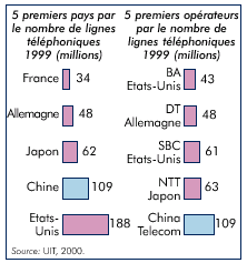 Chine était de 8,6 lignes téléphoniques pour 100 habitants à la fin de 1999 et China Telecom est le numéro 1 des opérateurs