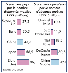 de pénétration à la fin de 1999 était de 3,42 pour 100 habitants. China Mobile est le numéro 1 des opérateurs