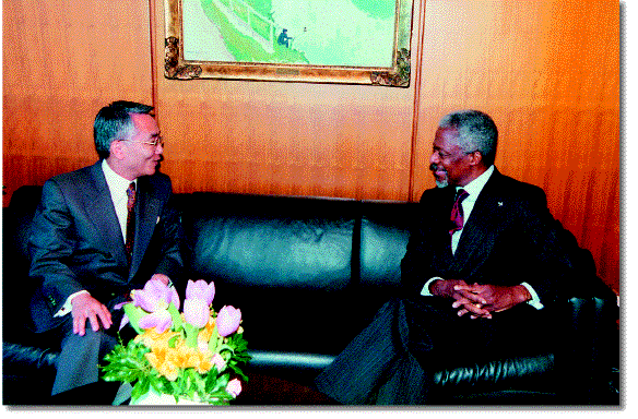 Yoshio Utsumi (left) and Kofi Annan (right) stressed the need for Heads of State, executive heads of
