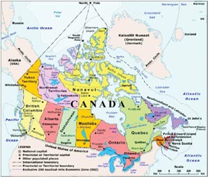 in Ontario, the northern parts of the country and off the eastern coast. Large