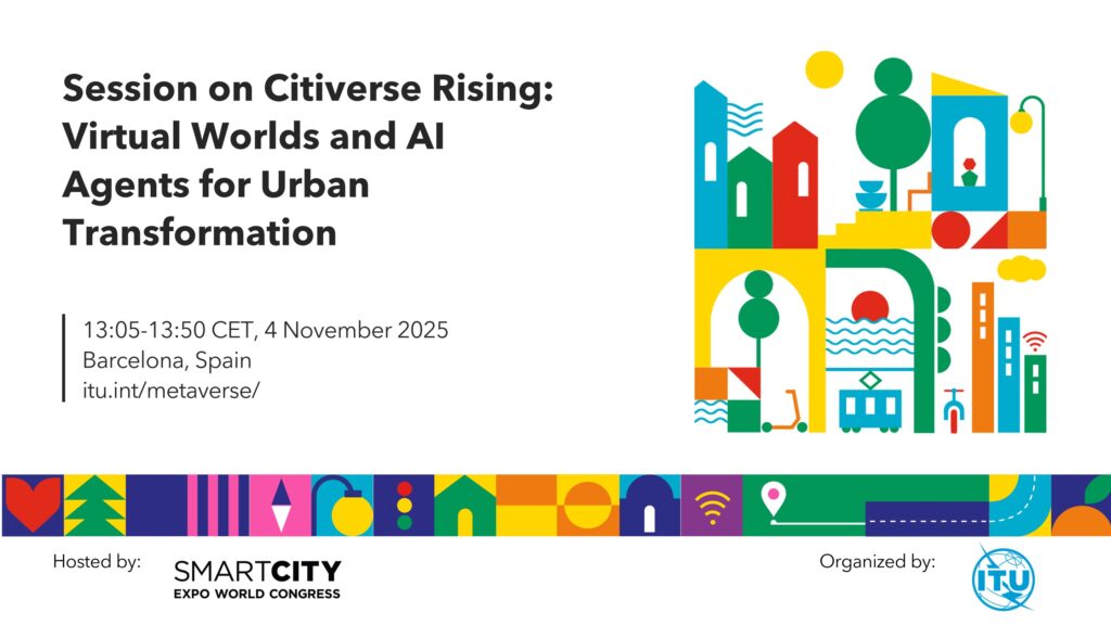 The Session on Citiverse Rising: Virtual Worlds and AI Agents for Urban Transformation will take place on 4 November 2025 from 13:05-13:50 hours, Barcelona Time, in Barcelona. This session will take place in the framework of the Smart City Expo World Congress.