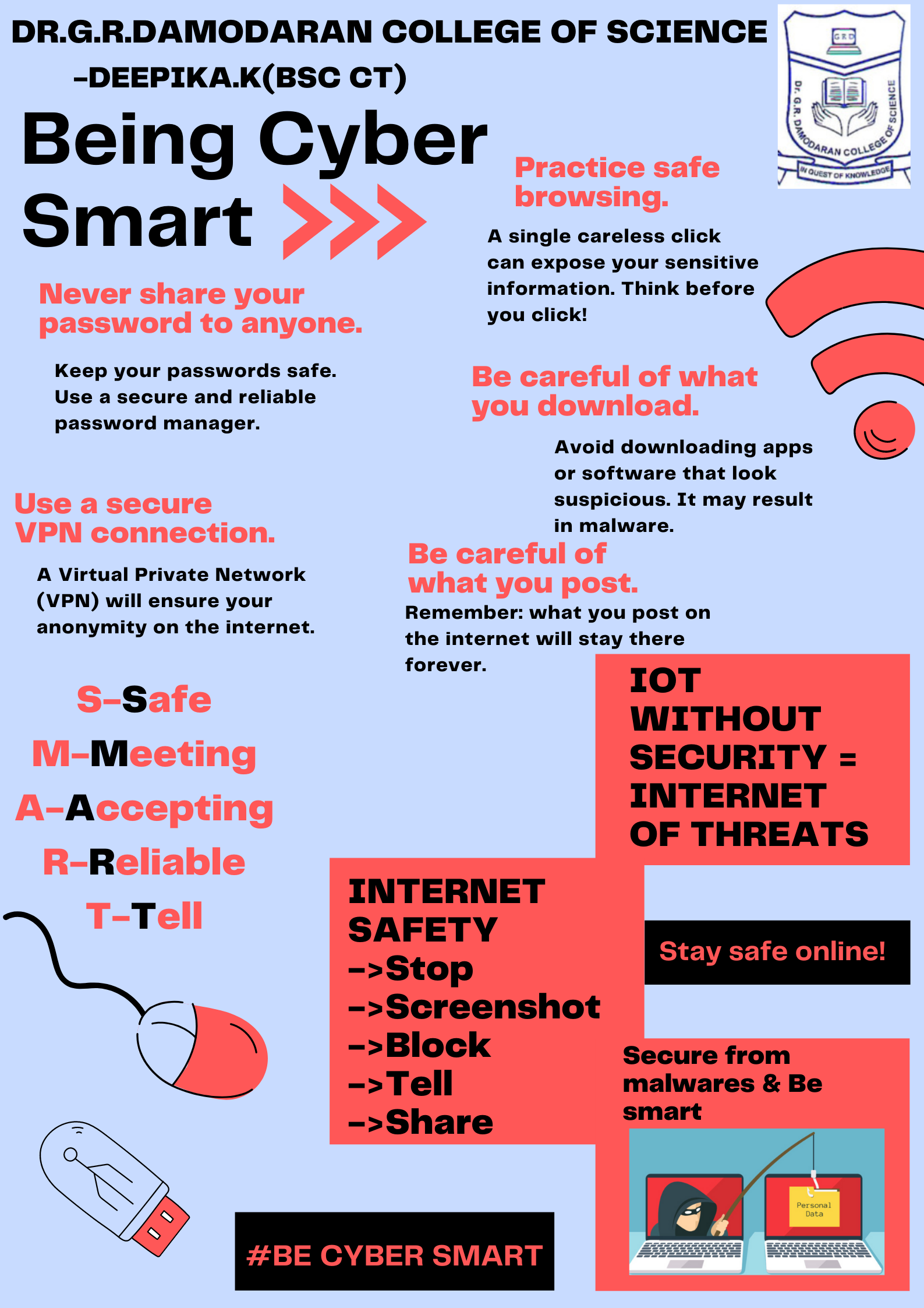 This event is planned to encourage girls students and young women to show up their thoughts, views and ideas on how they can engage themselves in the ICT community and how they can meet up challenges that they face in taking up their career in STEAM and ICT and also on the impact of technology in their day-to-day life. This poster presentation acts as a media to convey their thoughts in the form of digital art or sketches and presenting their views in the forum that are to be moderated by the juries. Themes: Being Cyber Smart Impact of ICT in the career of young women Gender Gap
