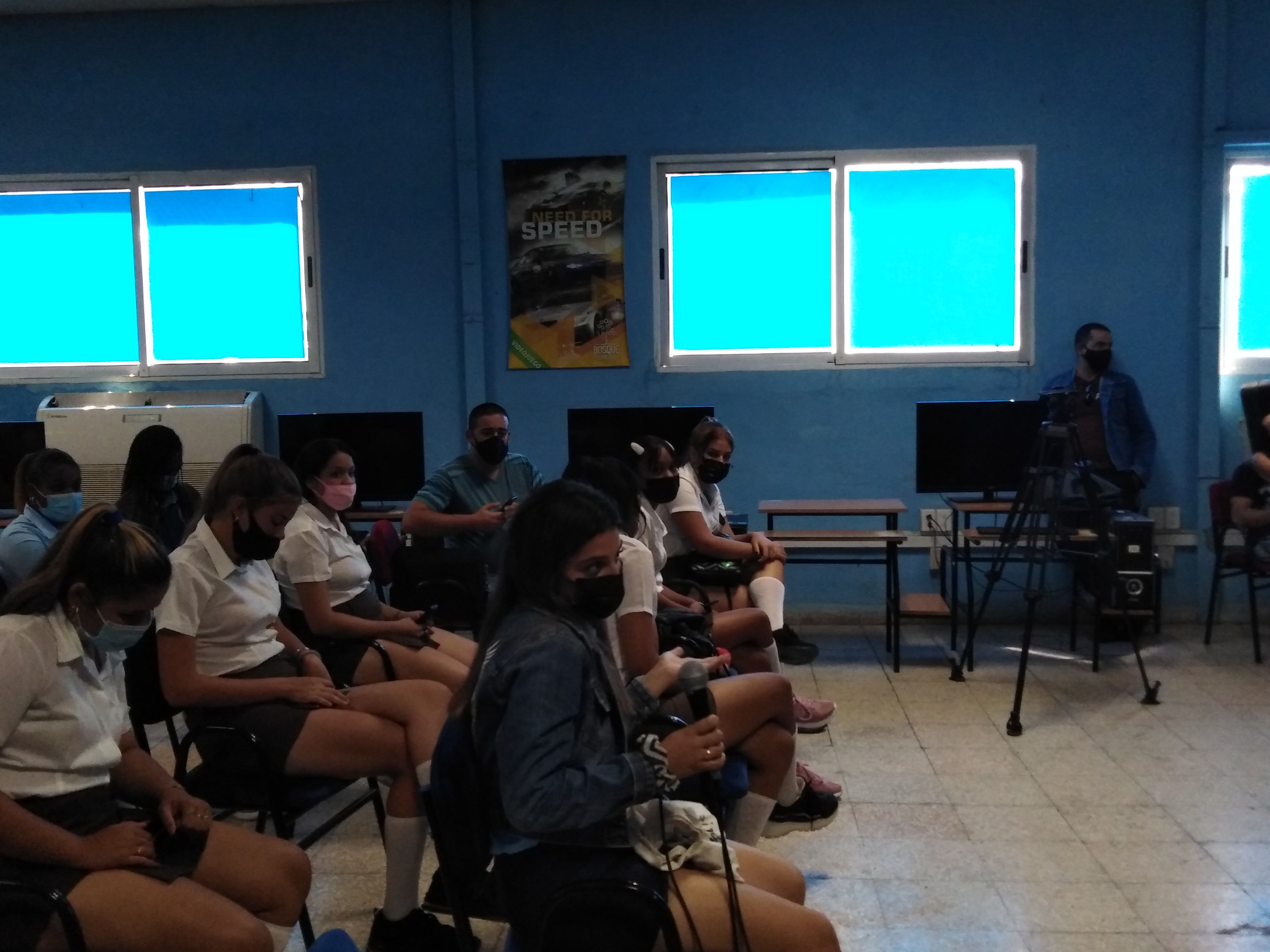 La unión de Informáticos de Cuba, en la provincia de Camagüey, en conjunto con el Joven Club de Computación y Electrónica realizan un conversatorio con jóvenes estudiantes sobre la importancia de la tecnología y las ciencias. Instructora de joven Club muestra el funcionamiento de la Robótica educativa y la importancia de esta para la sociedad.