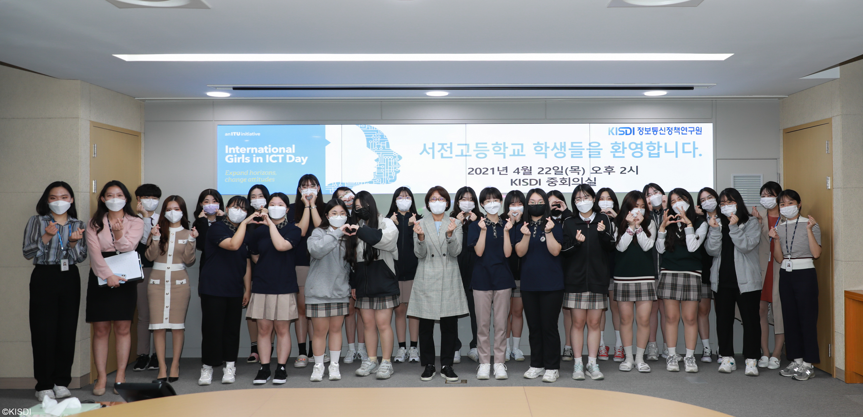 KISDI(Korea Information Society Institute), as a sector member of the ITU-D, will take a part in this 10th celebration of the International Girls in ICT Day by providing an opportunity to interact with Women leaders in various ICT sectors for local high school girls.Program- Video from BDT Director(Ms.Doreen Bogdan-Martin)- Presentations of Women Leaders from Samsung Electronics, KISDI, NAVER, NIPA(National IT Industry Promotion Agency)- Mentoring Sessions between high school girls and Women leaders