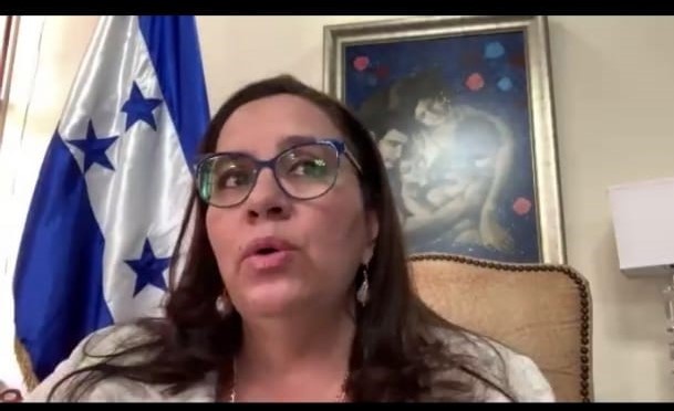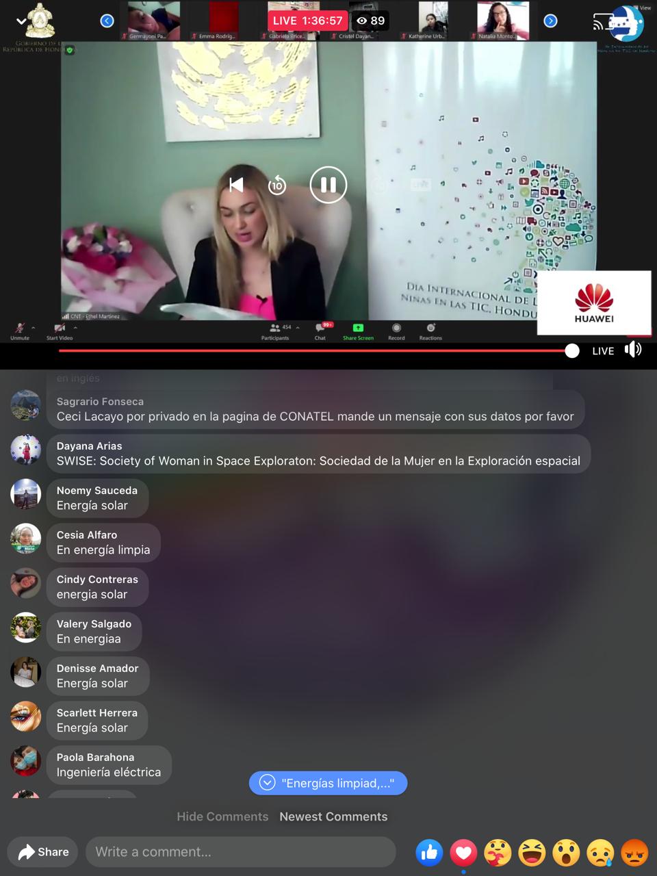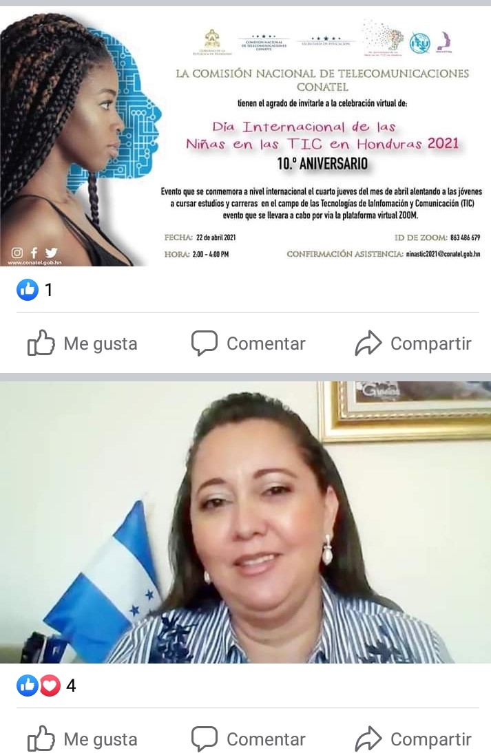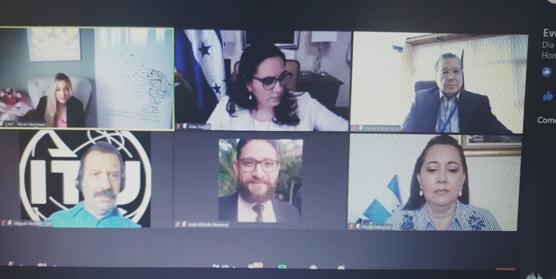 Primera Dama, Abogada Ana García de Hernández, Comisionado presidente de CONATEL, Abogado David Matamoros Batson, Representante UIT Ing. Miguel Alcaine, Director de DITIC. Ing. José Alfredo Romero y Gloria Menjívar, Sub Secretaria de Asuntos Pedagógicos de la Secretaría de Educación.