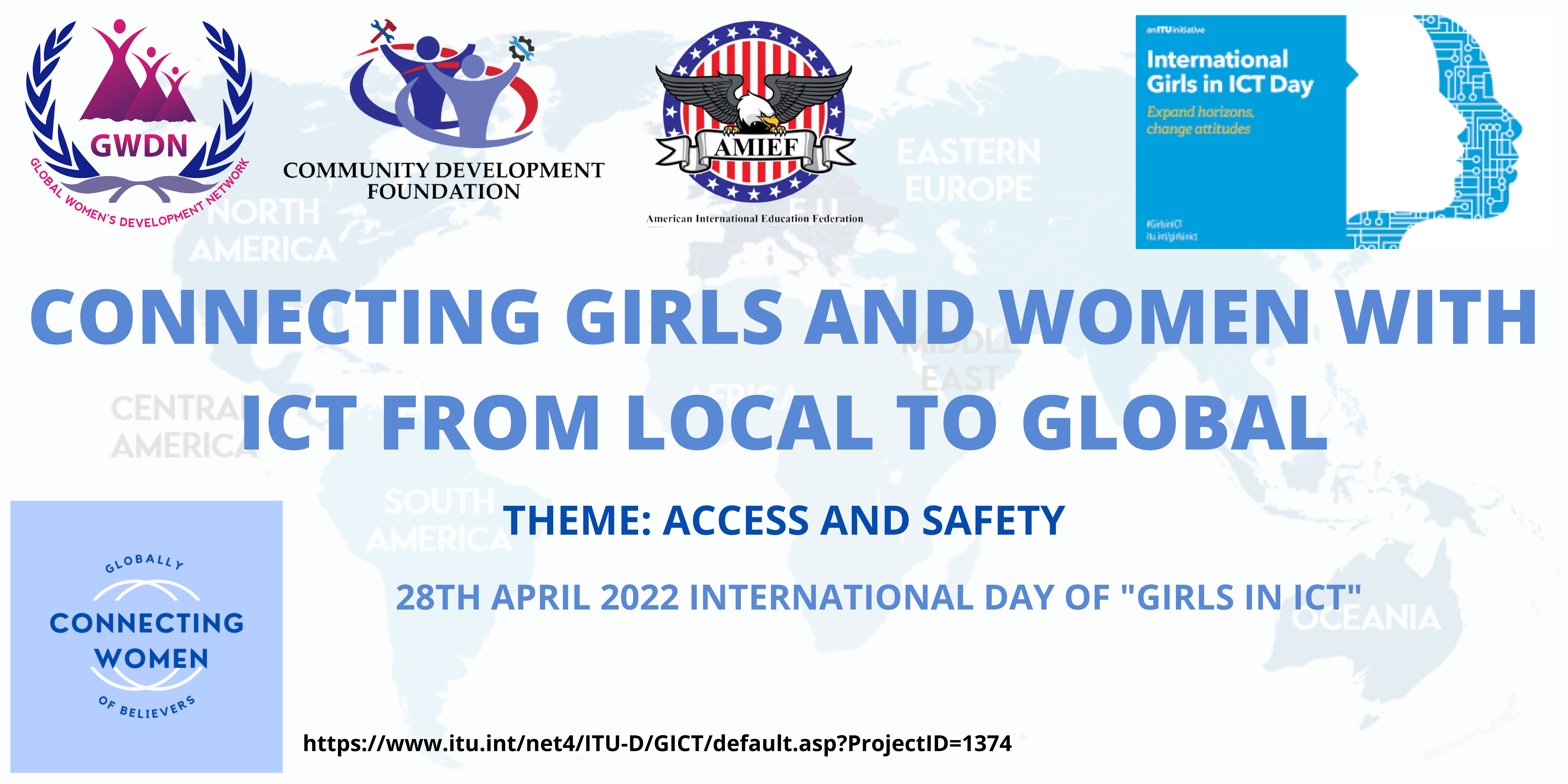 The main objectives of the “ICT FOR GIRLS FROM LOCAL TO GLOBAL” will be a virtual event through our networking and women empowerment component, in which we American International Education Federation (AMIEF), Community Development Foundation (CDF), and Global Women Development Network (GWDN) are going to engage 25+ countries, connect with more than 100+ women leaders as well as their countries' representatives to engage women and girls in ICT FOR GIRLS for their careers.Women worldwide want and deserve an equal future free from stigma, stereotypes and violence, a life with dignity, peace and equal opportunities and the latest technologies can enhance the overall performance in this regard.It offers an opportunity to reflect on the progress, call for change and to celebrate courage and determination acts by ordinary women who have played an extraordinary role in the history of their countries and communities with the use of IT/ICT and high-tech.In the light of the previous year’s group of like-minded women leaders from 17+ countries participated and communicated that women are the leaders in almost every field of life; in processes for economic development, through ICT in Rural.