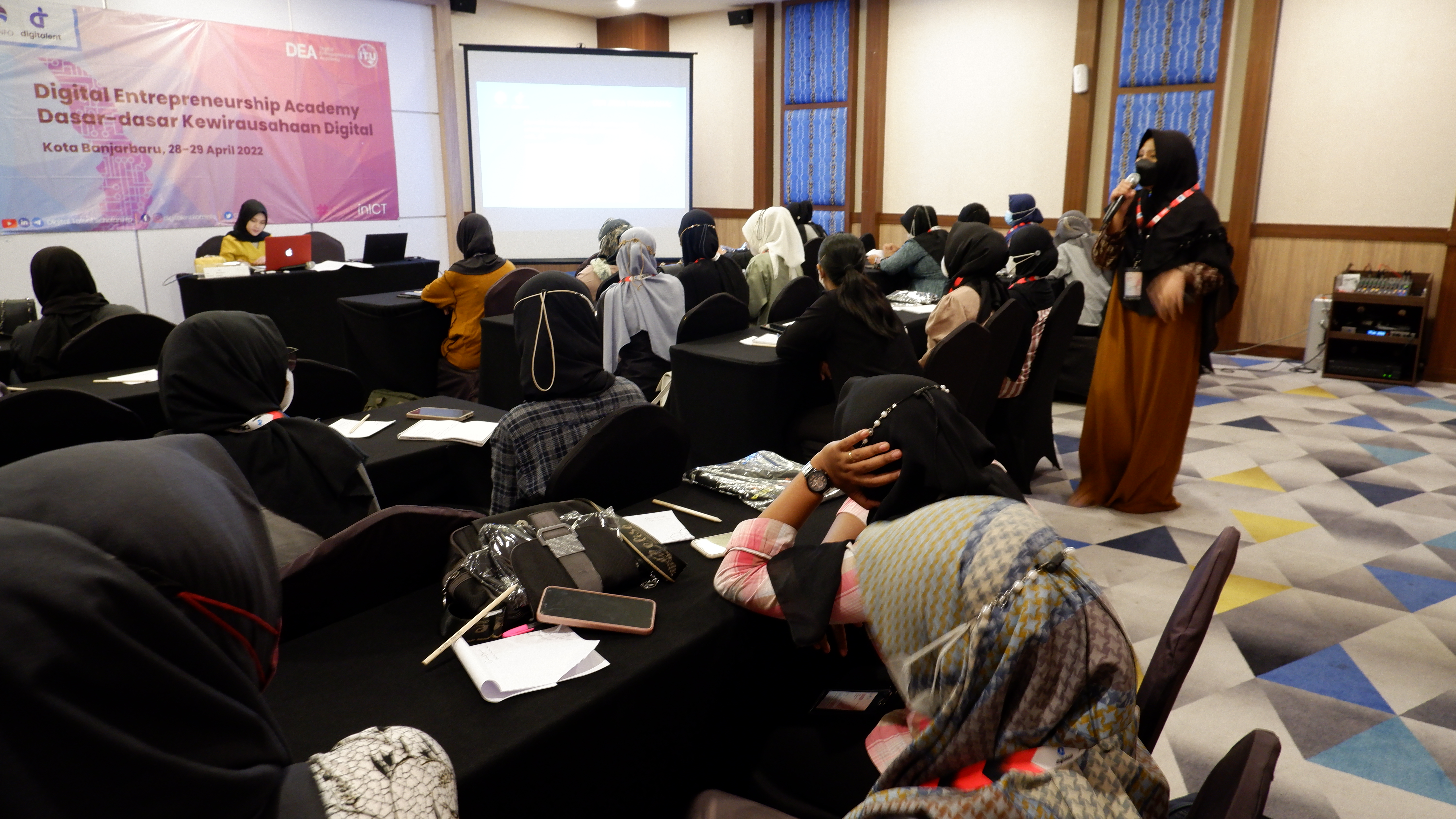 On aiming for improving access and safety to digital market and creating new digital entrepreneurs for women, the Digital Entrepreneurship Academy (DEA) - Ministry of Communication and Informatics - Republic of Indonesia held training Digital Entrepreneurship 101 targeting the digital native, Generation Z, to encourage them to become entrepreneurs. Trainings were held in Banjarbaru city and Bandung city on 28-29 April 2022 targeting 200 girls. The Digital Entrepreneurship 101 is a training for Micro, Small and Medium Enterprises (MSMEs) who want to start entrepreneurship digitally. This curriculum was compiled by the Digital Entrepreneurship Academy in collaboration with the Faculty of Economics and Business, University of Indonesia. In this curriculum, participants will be explained the concepts of theory, practice, and discussion on how to sell online, basic access, and safety selling online.