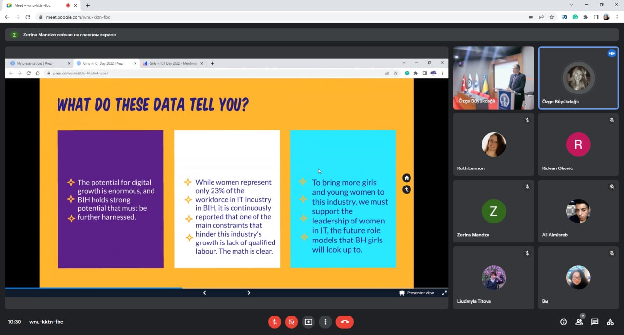 The event aimed at encouraging and inspiring girls to pursue their aspirations of becoming Information and Communications Technology (ICT) professionals and promoting jobs in the industry. The event was opened by Dr. Zlatan Mujak, Head of the investment department of Canton Sarajevo Ministry of Economy who emphasized that IT industry is currently one of the strongest industries that receives a lot of support from the government. Important partners in organizing this event were UN Women Bosnia and Herzegovina. The audience had an opportunity to meet Mr. David Saunders, UN Women BiH representative. Together with Ms. Zerina Mandžo, IT girls project associate, he emphasized the importance of empowering women to find their place in the IT industry and make their dreams come true. Professionals from different IT fields shared their knowledge and experience: Ms. Raquel Martinez Hernandez, Cisco Networking Academy Technical Manager; Ms. Ruth Lennon, Chair of Association of computing machinery women, Ms. Oleksandra Yeremenko, Professor from Kharkiv National University of Radio Electronics and Ms. Emina Brkanić, Sytsem Engineer at MIBO Komunikacije.