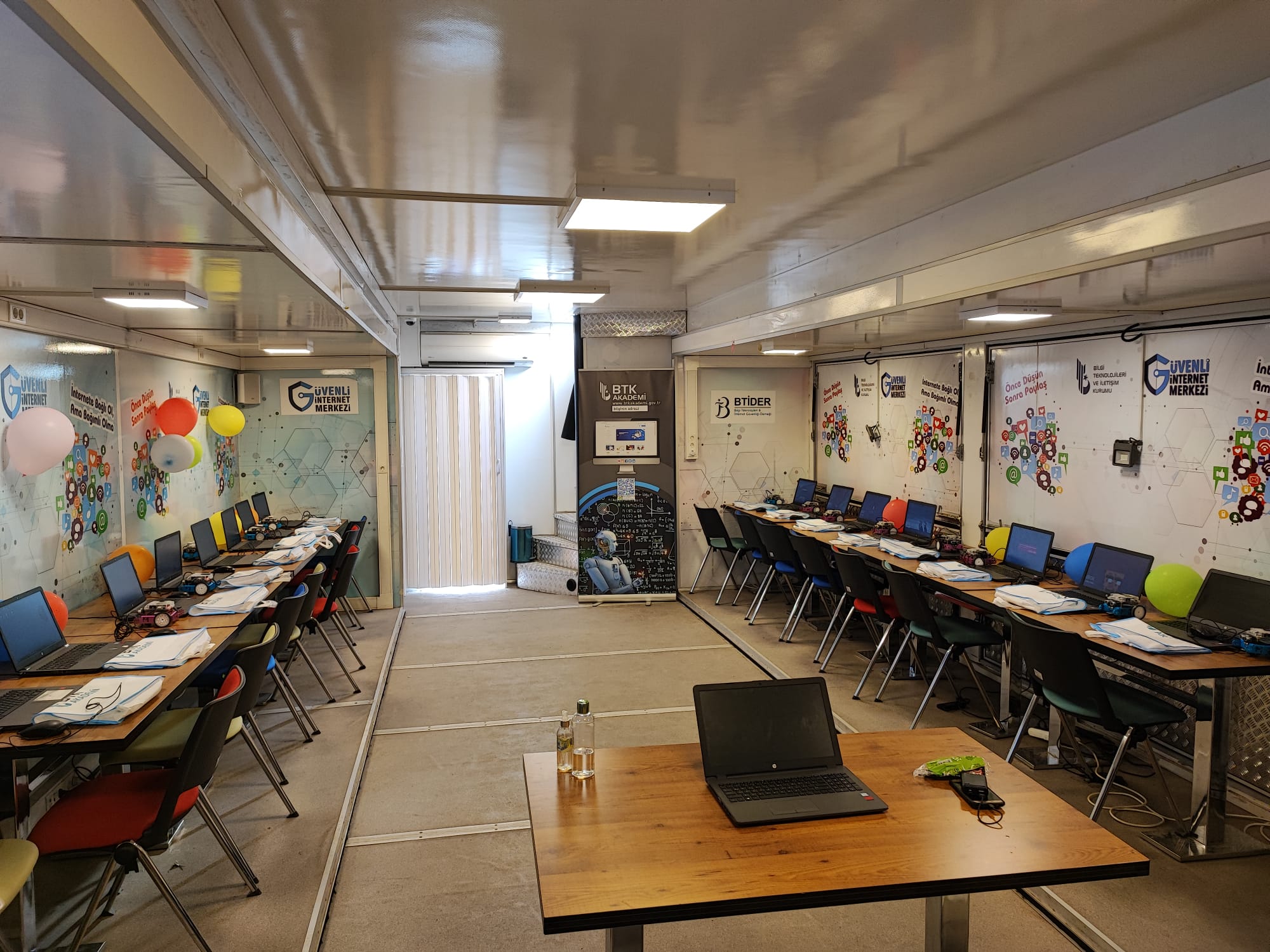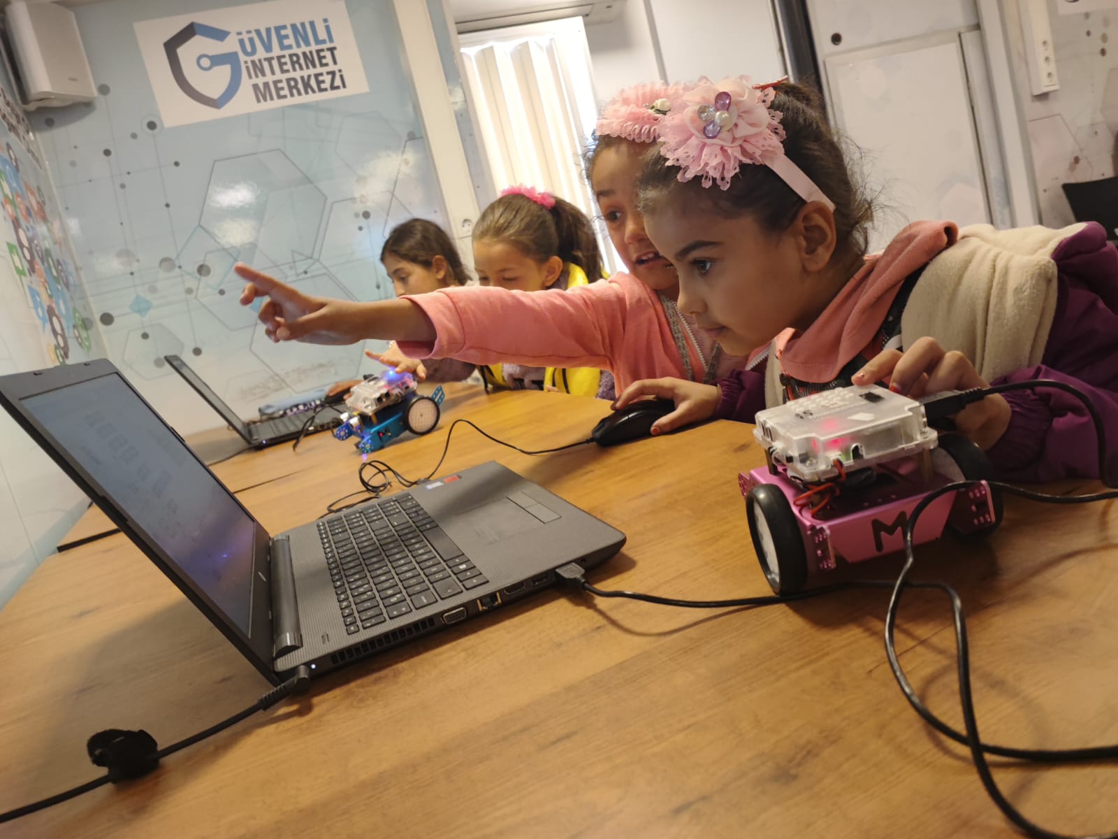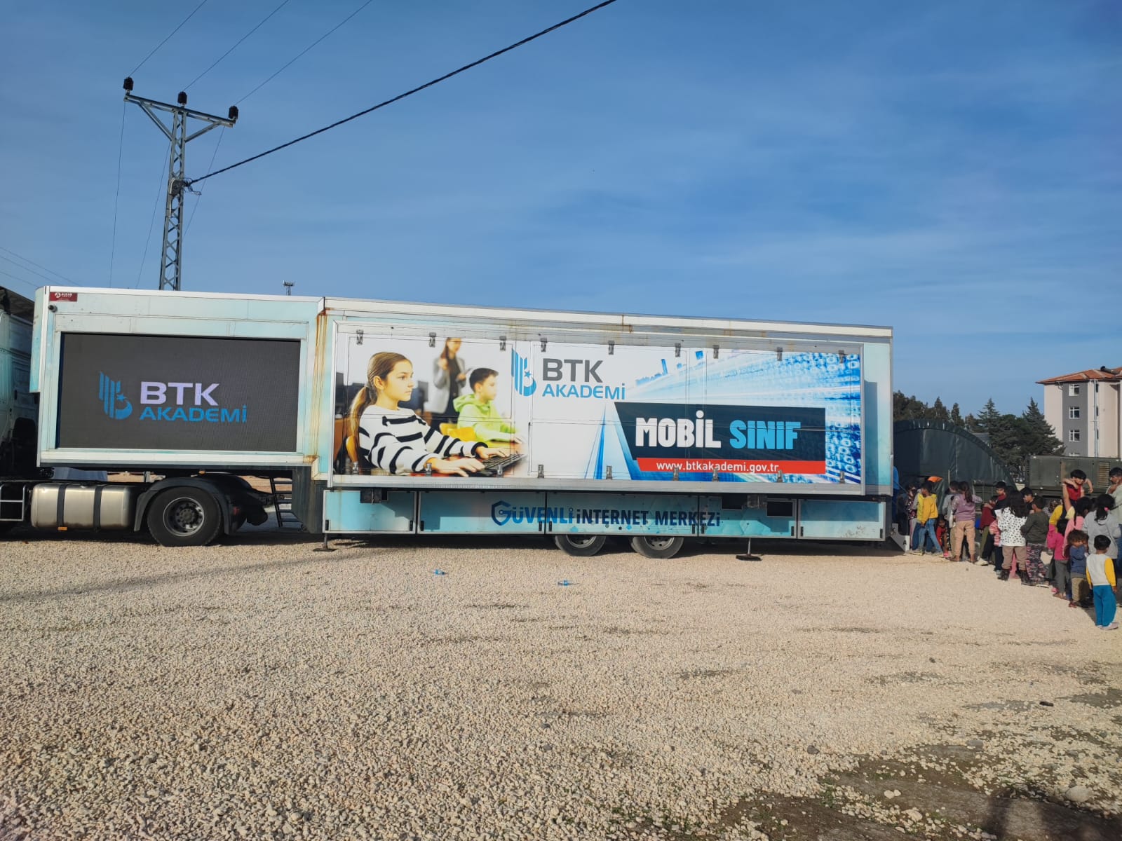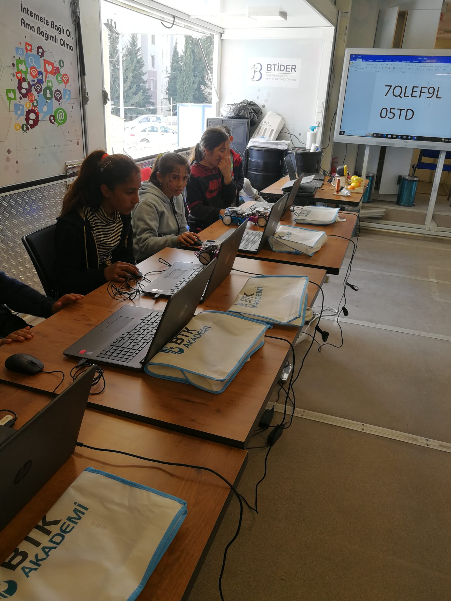 BTK Academy, which was established in 2017 as the training center of the Information and Communication Technologies Authority (BTK) of Türkiye, provides several trainings to children and youth including robotics coding, phyton programming, ThinkerCad 3D design, drone algorithm, entrance to AI, C# programming, etc.Following the devastating earthquake that hit Türkiye on 6 February 2023, BTK Academy’s mobile class was sent to the earthquake region in order to help children in the region cope with the immense trauma they have experienced. With three different teams, approximately 2500 students were trained in 16 different tent locations in Adıyaman and Hatay provinces during February and March. Within the concept of these activities and on the occasion of Girls in ICT Day, a special training session was organized on 26 February 2023 for schoolgirls at different age groups. Basic level robotics coding training was given with mBot and Makey Makey sets. Very positive feedbacks have been received from the trainees and the training provided for the girls the opportunity to experience the programming field and to discover their potential in STEM.