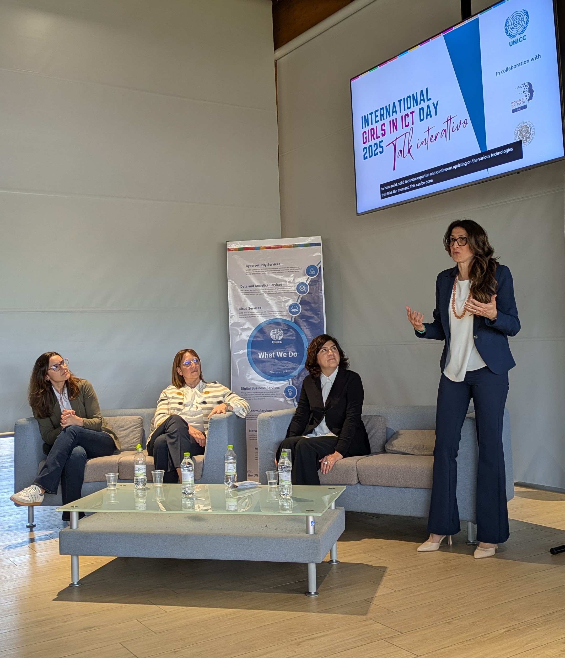 The United Nations International Computing Centre (UNICC) Brindisi Outreach Team, in partnership with the University of Salento and Women in Big Data – Italy, has organized an "Interactive Talk" on 24 April 2025, to celebrate the International Girls in ICT Day. The aim is to promote female inclusion in technology and encourage young women to pursue careers in ICT.The event embraced the 2025 theme, “Bridging ALL Divides,” highlighting the need to overcome technological, social, cultural, and gender barriers for an inclusive digital future.By sharing their personal experiences, the challenges they overcame, and the stereotypes they defied, five senior female professionals at UNICC inspired students and younger generations, offering powerful real-life role models in a sector that is key to the future of work and society.The event was an opportunity to celebrate female talent, promote gender equality, and foster a fairer and more inclusive digital ecosystem.
