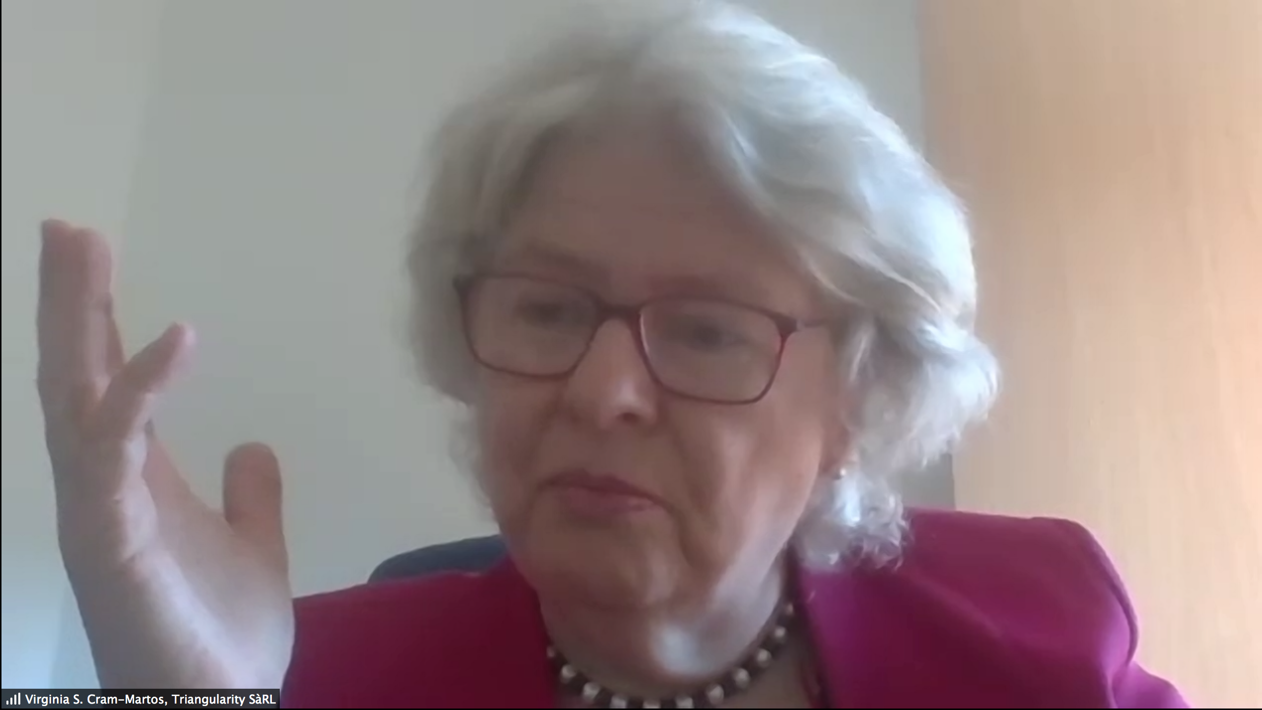 Virginia Cram-Martos is CEO of Triangularity, a social impact company that supports the use of innovation, e-commerce, and trade for development. She was formerly Director of the Economic Cooperation and Trade Division in the United Nations Economic Commission for Europe (UNECE). In this role, Cram-Martos supervised intergovernmental programs covering trade facilitation; trade-related standards, including commercial agricultural quality standards and electronic business standards; innovation and competitiveness; and public-private partnerships.