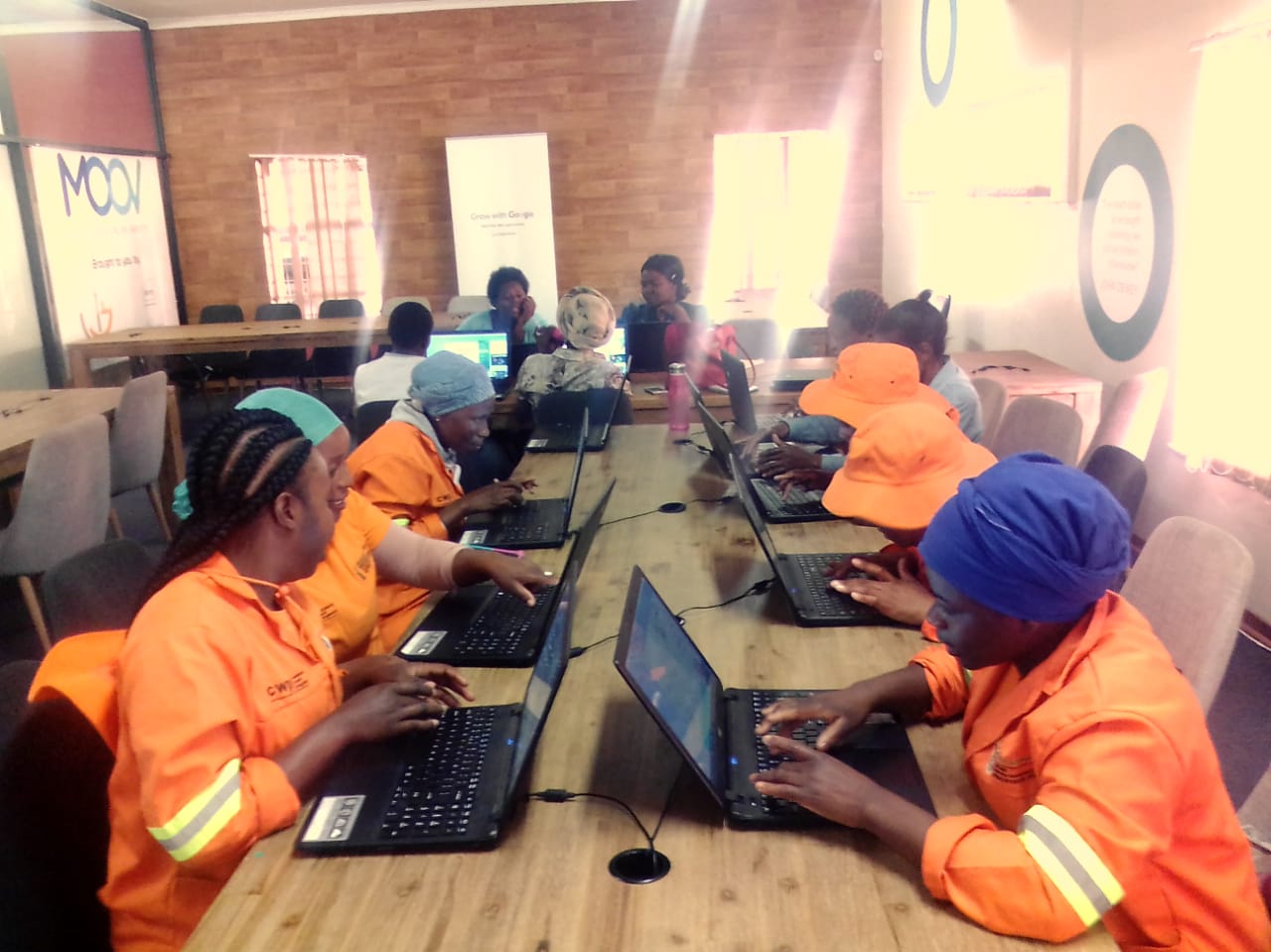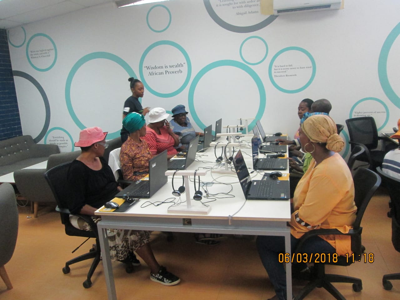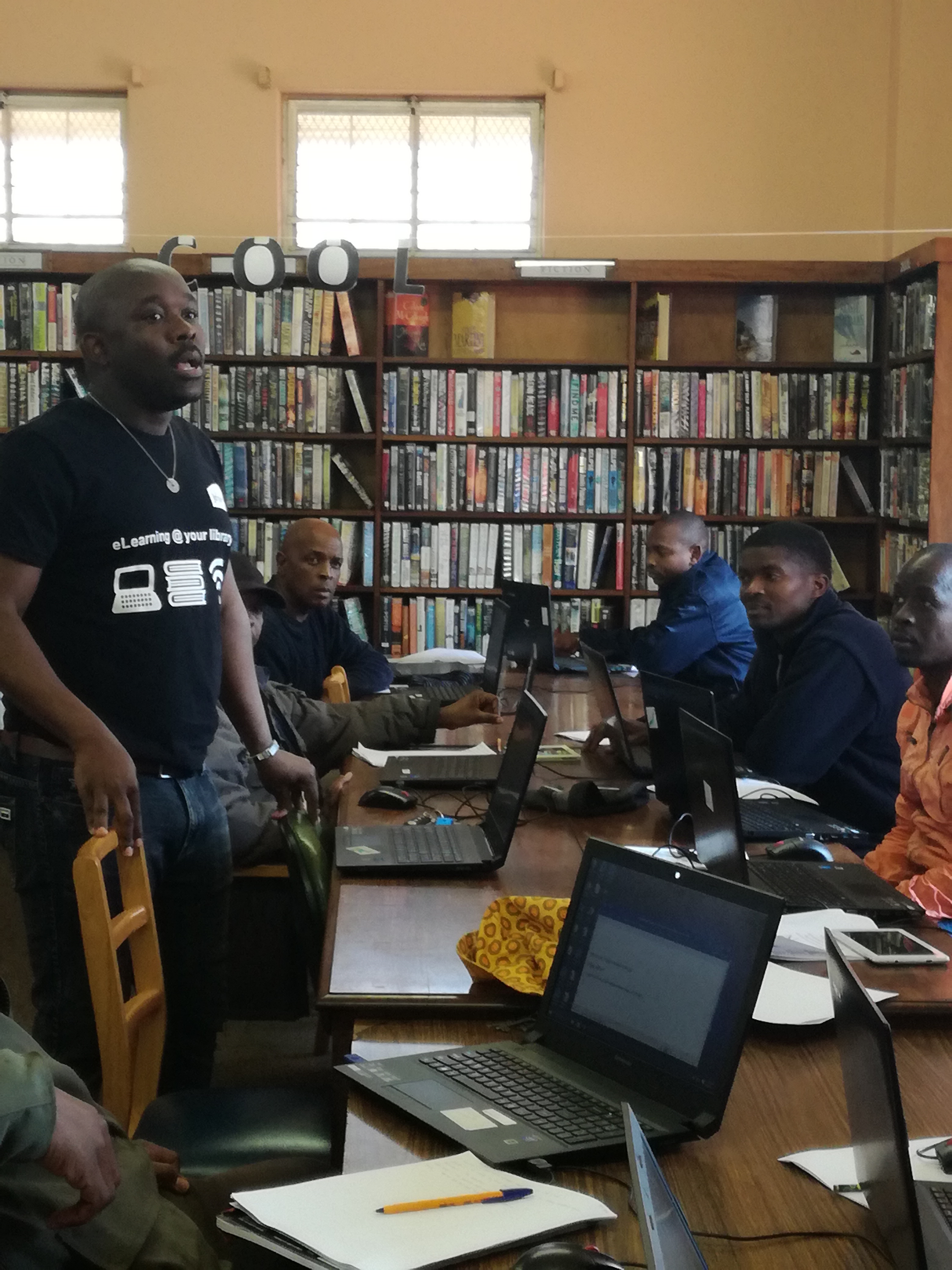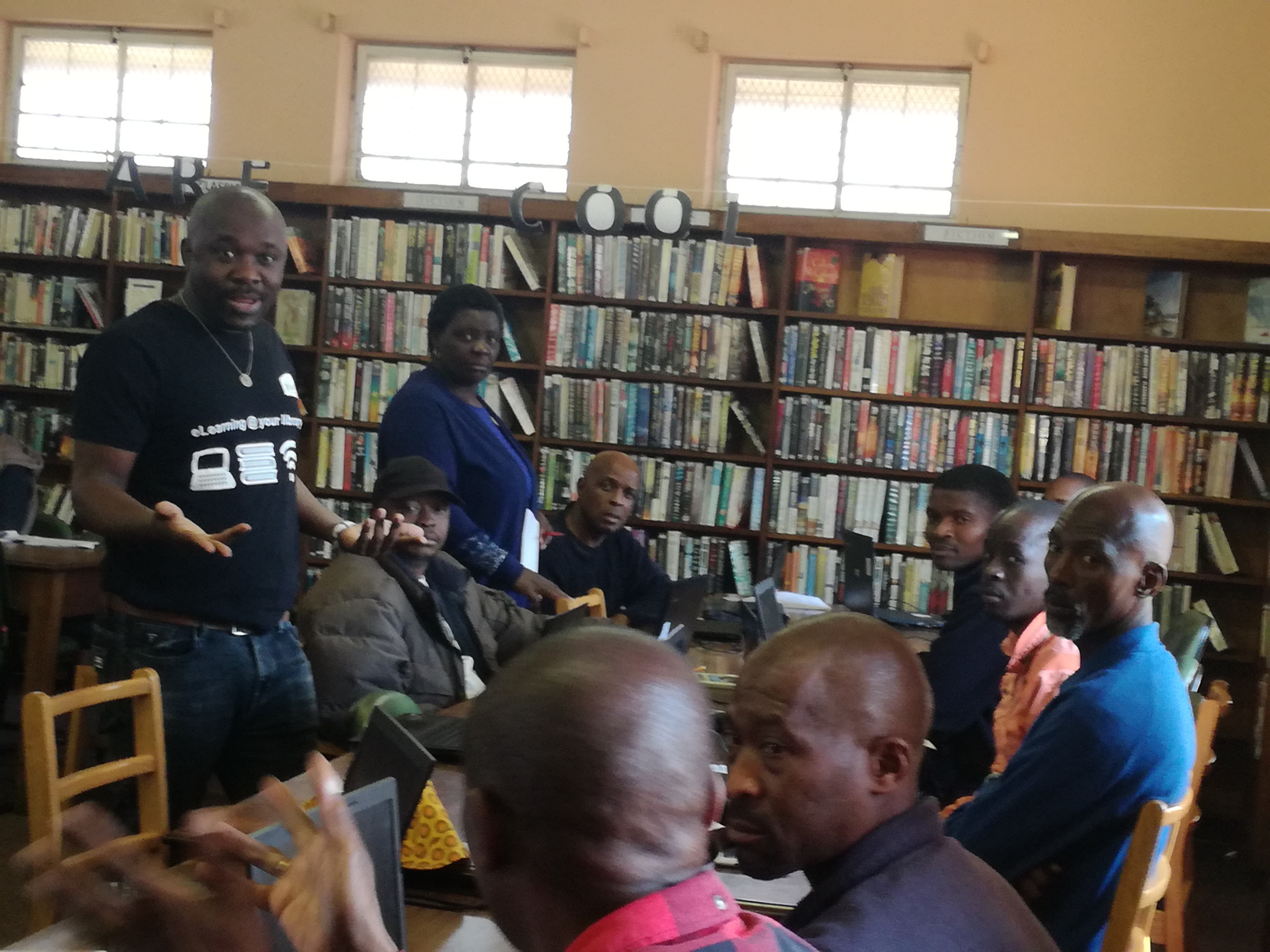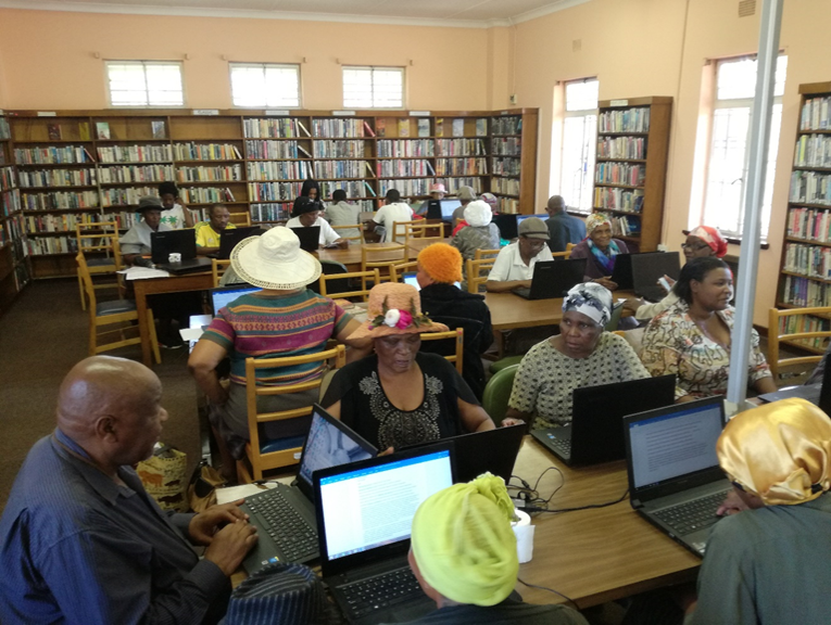 The 12 eLearning classrooms (or what is traditionally called computer labs in other libraries) are located in 12 libraries from all 8 regions in the City of Johannesburg and were introduced in 2016 to be used only for online courses, and this was an initiative introduced and managed by a private company. In 2017 the City discontinued funding the management of these facilities, therefore City of Joburg libraries had to find ways of ensuring that these facilities continue being utilised. The eLearning unit redesigned and introduced different programs in these eLearning classrooms in 2018, turning them into spaces where the communities can enjoy various services both offline and online and also to assist libraries without computer facilities through the concept of “mobile elearning classrooms.While generally the introduction of technology, internet and online learning has made libraries more appealing, the Elearning Classrooms have played a major role in encouraging communities to come back into libraries in a safe environment to access internet and also learn online. Mobile elearning classrooms have made the library environment more vibrant wherever they are brought in, and also encourages resource sharing for the under-resourced libraries