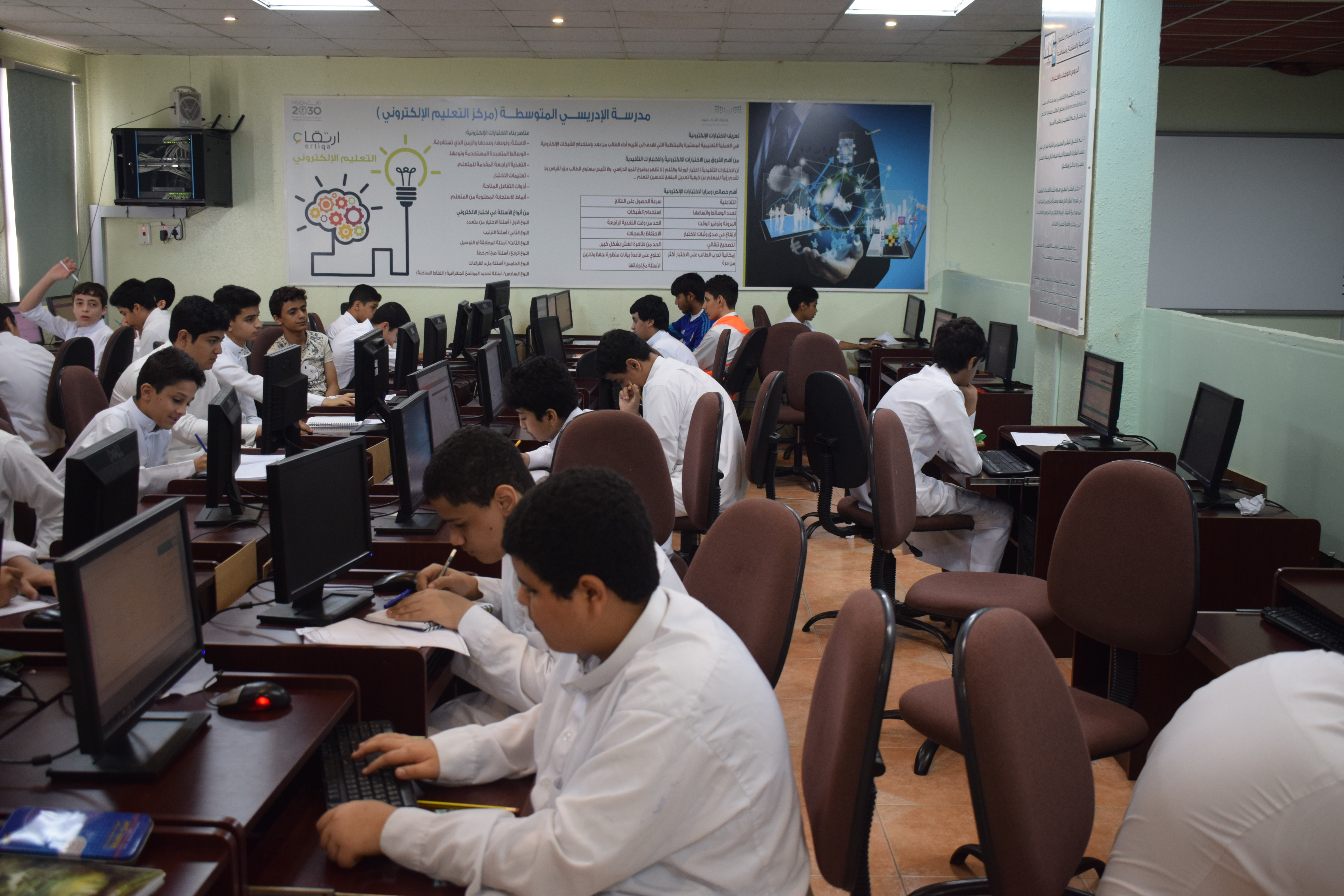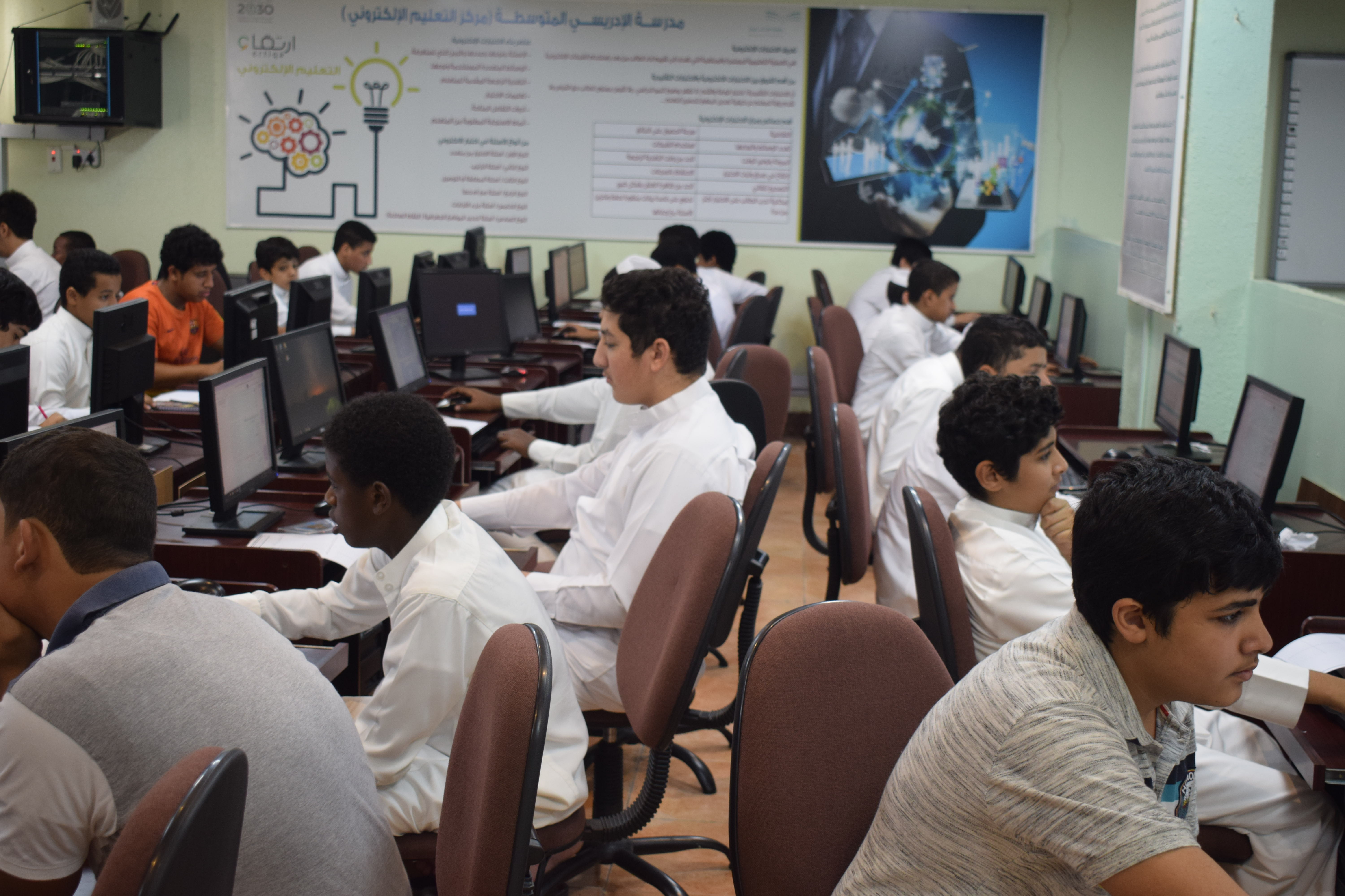 The idea of setting up an e-learning center to overcome barriers to elearning The disadvantages of e-learning that we have identified and most of which have been addressed include the need for infrastructure, in terms of the availability of computers, high speed Internet connectivity, and the cost of its application is very high.The need for specialists to manage e-learning systems is not simple and needs to be studied and intelligent in implementation and application, so there must be qualified staff and able to manage this technical system. The presence of a large number of existing teachers are unable to use digital technology in a way that enables them to deal with them and to teach through them, so intensive courses must be held to help them. The loss of the human factor in the educational process, the absence of dialogue and effective discussion, and many students are unable to express their ideas in writing, and they need direct verbal communication to express what they think.We started to create an integrated center that accommodates more than 40 students and includes a sophisticated network and participation with a global company in e-Learning manages the site of the center efficiently and ably with the necessary protection 24-hour teacher training to take advantage of the possibilities at the center training students on Ways to access the curriculum and accomplish the required tasks are easy and fast communication with the teacher and the student even outside the official working hours, where there are many means of instant communication distance. Different teaching methods suitability for students, the e-Learning center allowed the teacher to focus on important ideas and to take into account the order and order in the annotation process so that the lesson is easily and quickly understood. The educational material is available throughout the day and all days of the week, helping many students to arrange the time of their studies, and enabling them to do other work alongside the study.