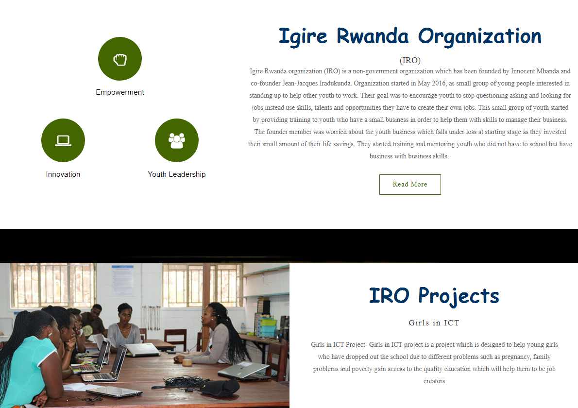 Igire Rwanda Organization is known in the community through empowering women and girls to have access to ICT skills and job readiness.