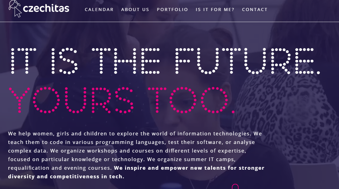 Czechitas is the leading platform in the Czech Republic making technology accessible, relevant, and attainable for women and girls in their professional and personal goals, regardless of age groups, education level, or work experience. We provide lectures, workshops and long-term courses on programming, web development, graphic design, digital marketing, and data analytics all at low-cost to participants. Our trainings have influenced thousands of women who have opted to choose or change their career paths, using their new technical skills to advance themselves. Our unique platform connects employers interested in gender diversity for their teams, with talented women searching for new roles. We also inspire young people to pursue their interests in IT throughout their academic and professional lives. In addition to workshops and courses held during the school year, we also host IT summer camps. And we give voice on broader issues concerning women and technology through our participation in public forums, and consultations for the private, NGO, and public sectors. Czechitas helps girls and women to take the first steps towards tech knowledge and guides them along their digital journeys. If they continue to pursue work opportunities or studies in tech fields, our mission is accomplished. But we also stay connected, and engage our community to helping others find their way in an increasingly digital world.