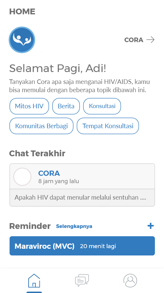 Comrades is a smart application that provides support for PLWH and provides information that is really educated for society. By using Comrades, PLWH or society is not only can do the consultation about HIV/AIDS but also they can read some educating information such as some support tweets from twitter that has been classified by using Machine Learning Technology and they also can read some news, articles, and events about HIV/AIDS that has been validated by the communities. In addition, PLWH can set the reminder to remind them consuming the medicine with the schedule based on the doctor recommendation.
