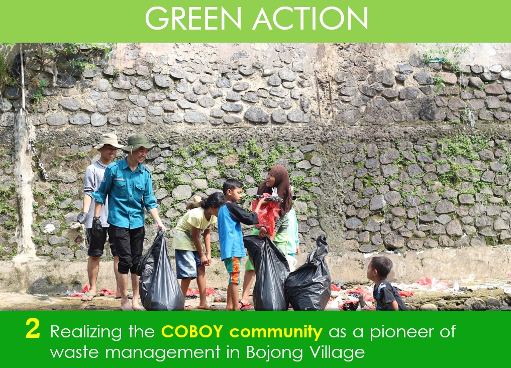 The problem of waste and bad environmental sanitation in Bojong Village was a complex problem and touches all aspects of life. The emergence of this problem was caused by the lack of waste disposal facilities and understanding of community in managing the environment. Education needs to be done for community, especially for children about the effort to conserve environment and waste management since childhood. COBOY present as an solutive innovation education to instill an attitude of environmental appreciation and environmental conservation efforts to children from an early age. This educational program was conducted in Kampung Bojong, Pamagersari Village with the target are 30 childrens aged 5-14 years. The methods were socialization, education, action, and advocacy activities equipped with COBOY learning media. In cognitive aspect, the results have showed an increase understanding and positive changes towards mindset of participants in managing environment based on the four aspects of assessment from the lowest 36.7% to 83.3% which can be seen from the results of pretest and posttest. Affectively, there was an increase in the positive attitude of participants in maintaining the environment, namely their participation in cleaning the river and disposing of garbage in its place from the lowest value of 23.3% to 76.7%. In addition, to support program sustainability, institutional strengthening has been done with Karang Taruna and community figures to run COBOY program which is proven by the establishment of environmental regulation in Kampung Bojong. Such rules will be considered in the Village Rule of Pamagersari. As effort to expand the benefits has also been carried out the socialization of Training of Trainer (ToT) in SDN 01 Jasinga and has cooperated with Bureau of HUMAS Ministry of Forestry and Environment (KLHK) RI in disseminating environmental education to schools in Bogor Regency by adopting COBOY game as an effective environmental learning media for children.
