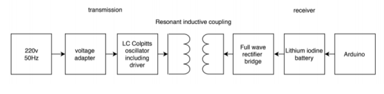 Baseline Design Description: The system consists of two main sections transmitter and receiver. Transmitter coil is placed outside the human body, whereas receiver coil is located inside the human body in the pacemaker. Power source provides a 220V, 50Hz to the voltage adapter. The adapter was used to step down the voltage and convert from alternating current (AC) to direct current (DC). Then the LC Colpitts oscillator generates 12V and 1MHz frequency. The generated alternating current will pass through the transmitter coil inducing voltage at the receiver both primary and secondary coils should be tuned to resonate at the same frequency to enhance charging efficiency using resonant inductive coupling principle. Full wave bridge rectifier takes the received AC and converted to DC since, it is needed to charge the lithium iodine battery. Lastly, Arduino is added to the system to indicate the battery voltage.