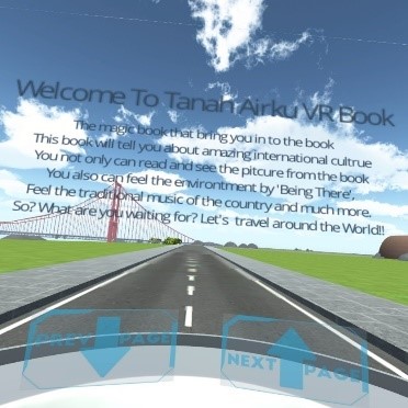 Tanah Airku is an interactive learning media for learning culture with augmented reality technology and virtual reality technology. Tanah Airku is aiming to make learning process more fun and also interactive, to make learning process more fun and interactive Tanah Airku provides Innovation. The Innovation of Tanah Airku Are :1. Show 3D object and coloring2. Play traditional instrument and song3. Evaluation with Trivia Quiz4. Immersive Culture Learning with Virtual Reality Technology5. The development content of "Tanah Airku" is based on user habits, which is analyzed by azure machine learning