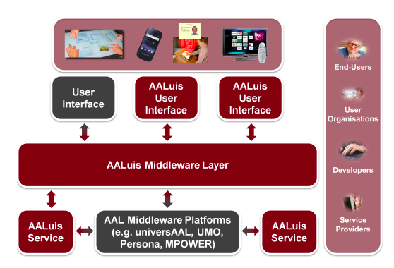 The aim of AALUIS is to facilitate the connection of different services to different types of user interfaces and thus to enable future users of AAL systems to use more services interacting in their preferred way The user interface (UI) is an important feature of interaction between the human and the machine (services). Thus, the main focus of the project lies on the development of innovative UIs and a layer for the easy and standardized integration of new and existing UIs. The aim is to build these interfaces and the connection layer on open and already existing middleware platforms.